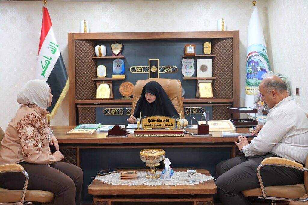 عقدت وكيل وزارة العمل للشؤون الاجتماعية السيدة هدى سجاد اجتماعاً مع اللجنة المختصة بنظام دور الرعاية المجتمعية لمناقشة مسودة مقترح لإنشاء دار او اكثر للحماية الاجتماعية بهدف معالجة حالات العنف الاسري وتوفير بيئة آمنة للفئات الاكثر هشاشة.