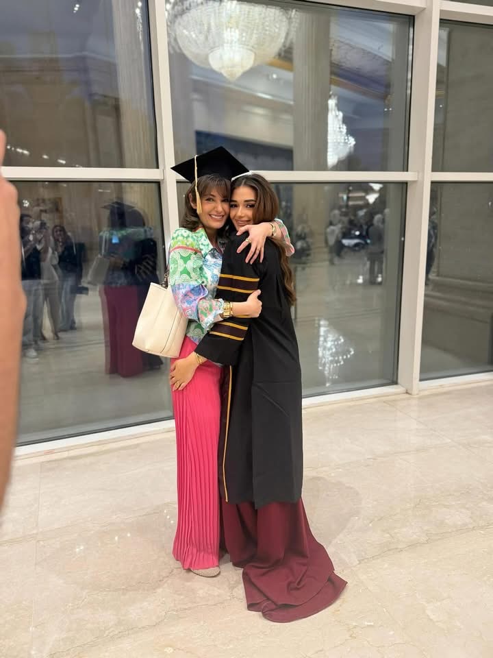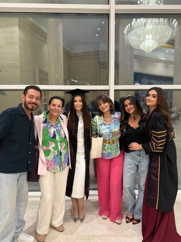 احتفلت النجمة الشابة ملك زاهر مع عائلتها وصديقاتها ووالدها النجم أحمد زاهر، بتخرجها من الجامعة إلى جانب شقيقتها ليلى.