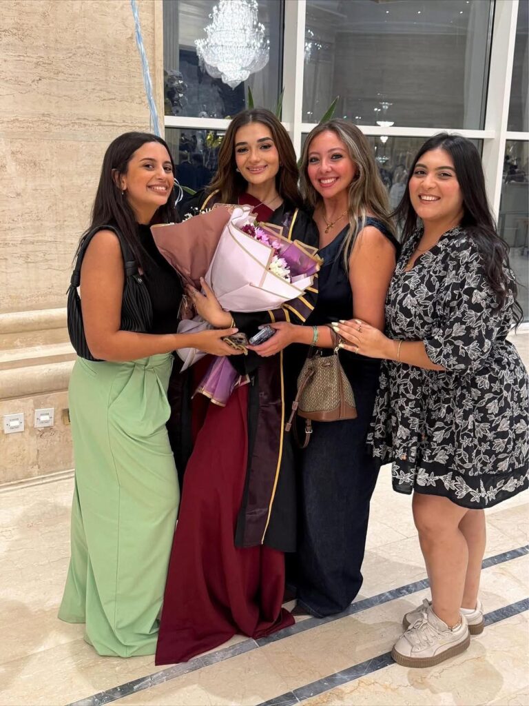 ملك أحمد زاهر مع عائلتها في حفل تخرجها