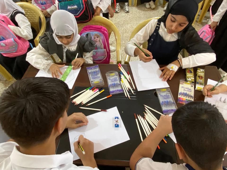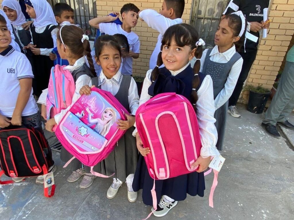 ووزعت بعد ذلك على الطلبة الهدايا والحقائب المدرسية .