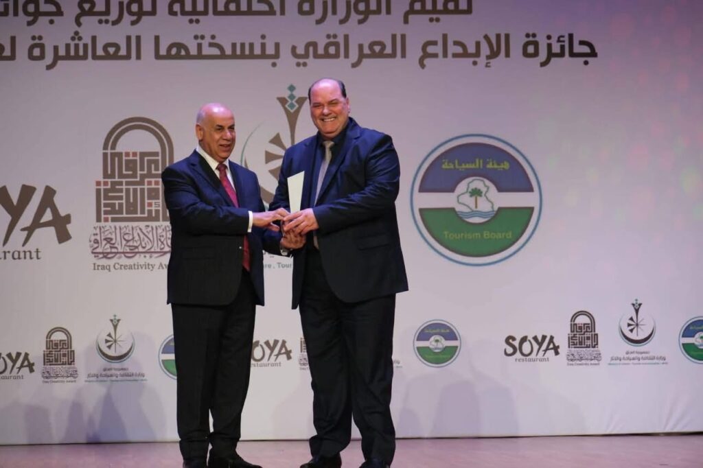 وخلال الحفل، كرّم معالي الوزير نقيب الفنانين العراقيين، الدكتور جبار جودي، مدير عام دائرة السينما والمسرح، تقديرًا لجهوده في دعم الفنانين والاهتمام بشؤونهم، وإسهاماته المتميزة في تطوير الحركة الفنية والثقافية في العراق.