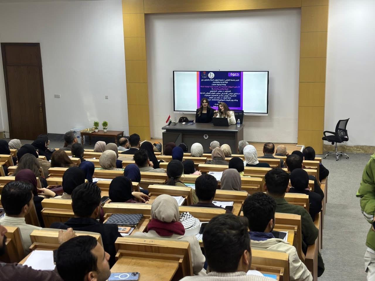 من جانبها، استعرضت الدكتورة نبراس المعموري المحاور الرئيسة للمحاضرة، والتي تناولت فن التفاوض، وإدارة النزاعات، والتخطيط الاستراتيجي، إلى جانب إبراز دور النساء في توظيف هذه المهارات لتحقيق الأهداف التنموية، ولا سيما ما يتعلق بتعزيز أدوارهن في القيادة وبناء السلام.
