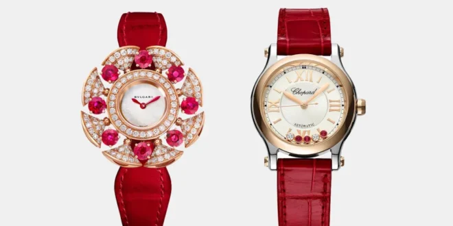 شهدت السنوات الأخيرة عودةً قوية لموضة الساعات الحمراء لدى أبرز دُور المجوهرات والساعات العالمية، من كارتييه بتصاميمها الكلاسيكية الراقية، إلى بولغاري التي تمزج الفخامة الإيطالية بالجرأة اللونية، وصولاً إلى شوبارد وغيرها من العلامات، التي قدّمت إصدارات خاصة بأحزمة حمراء أو بمِيناءات (قواعد) باللون الأحمر العميق.